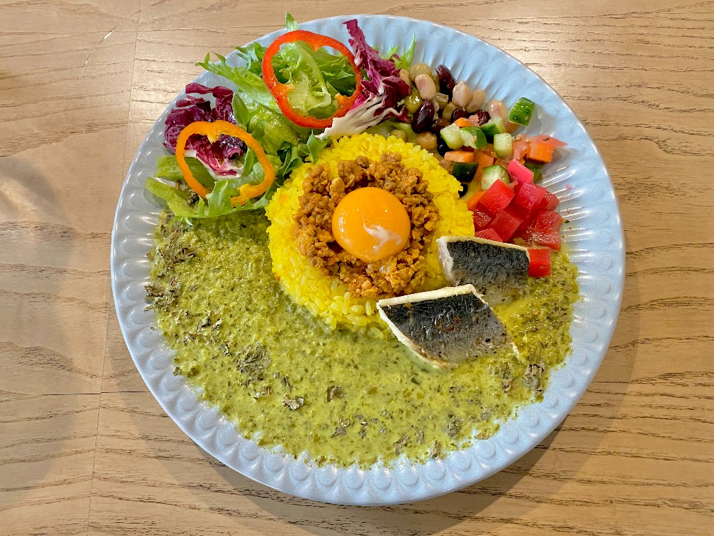 「鰆の塩レモン焼きとグリーンサグカレー」