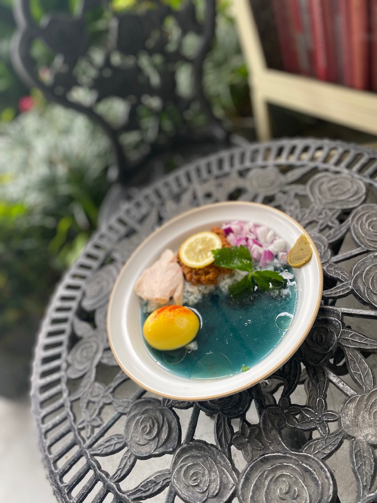 真奈さんが青色がお好きとのことで、バタフライピーを使用した鮮やかな青いカレーを作成しました。