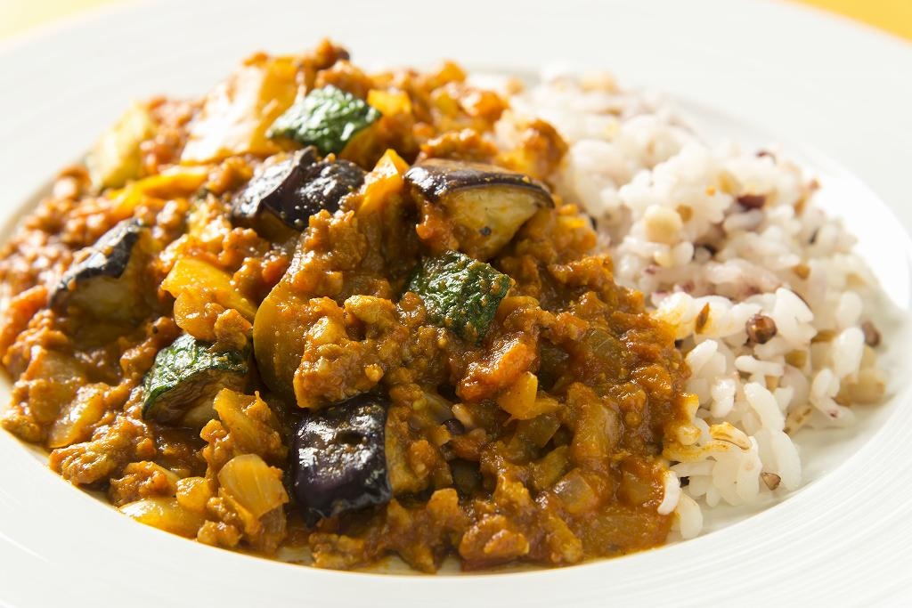 よくある茶色いだけのカレーではなく、当店では彩りを意識しています。彩りの豊かな野菜や飾りは、より食欲をそそりますよ。